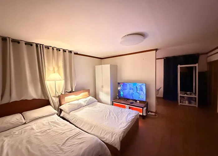 The apartment is in the Gangnam-Gu district of Seoul, just near the restaurant Brick Oven New York Pizzeria. This apartment is 350 metres from Club MASS, while Gangnam underground station is 300 metres away. Gangnam Station 1Min Apartment Netflix Two Big Tv is nestled around 3 km from the two - tiered traffic Banpo Bridge.